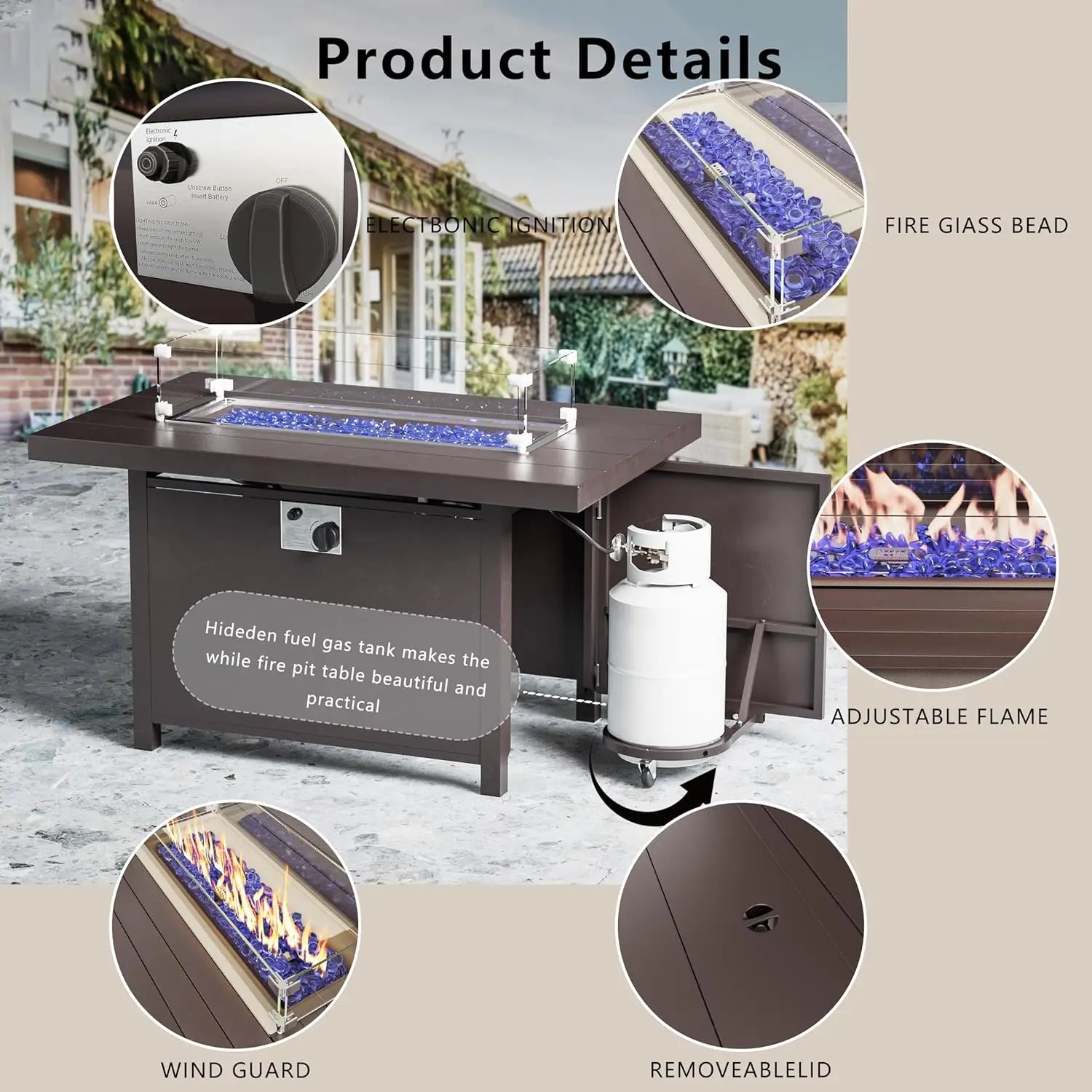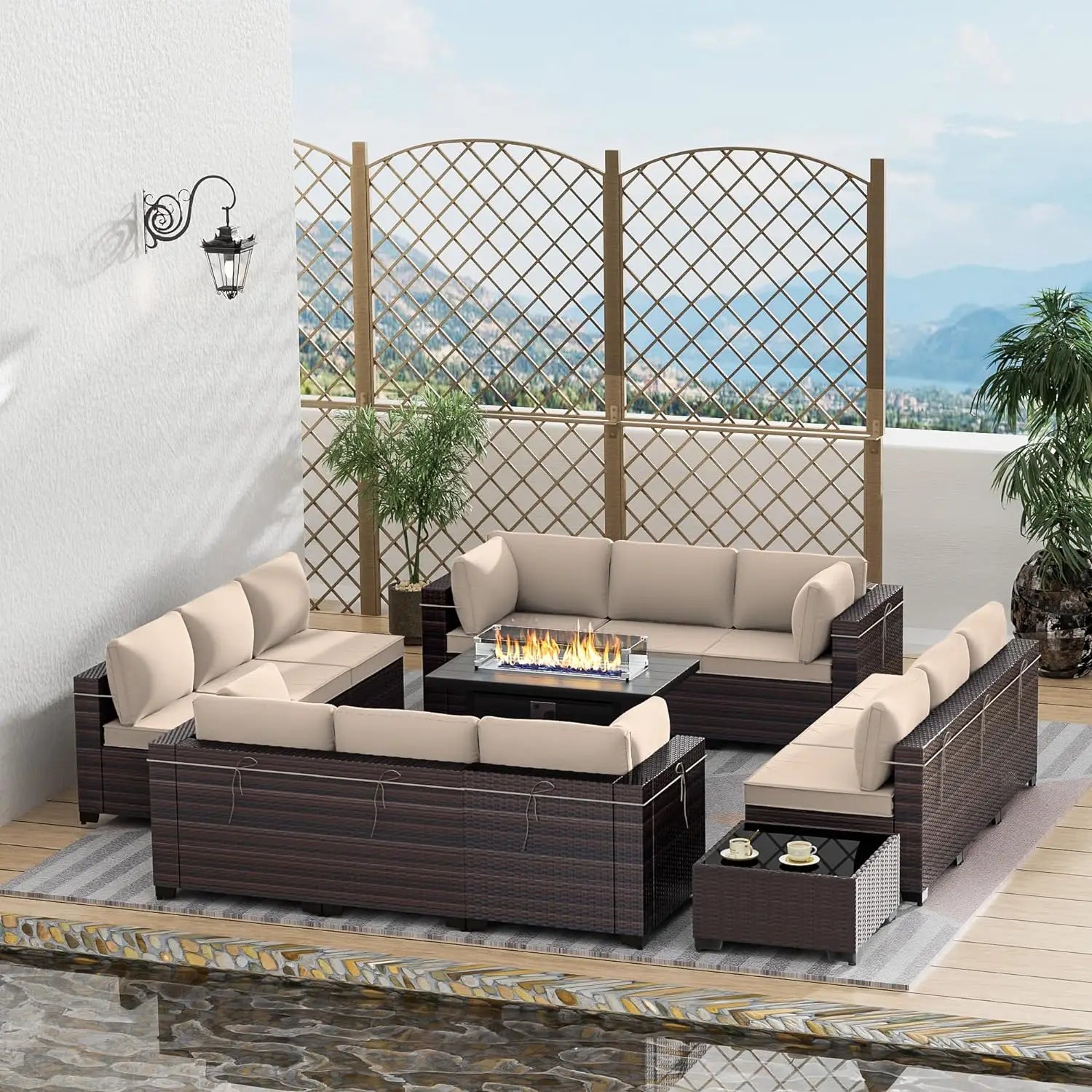 Elevate your outdoor space with our 11 piece patio furniture set, including 2 swivel chairs and a gas fire pit. This premium conversation set offers both comfort and style for your gatherings. Perfect for luxurious evenings under the stars