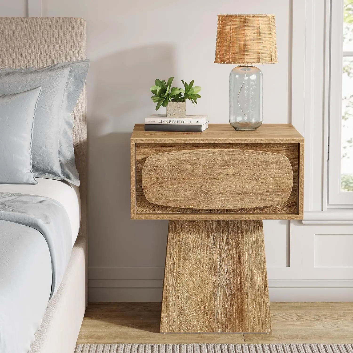 Elevate your bedroom with this 21" Mid Century Modern Nightstand, showcasing clean lines and timeless design. Crafted for both style and function, it offers a sleek silhouette that complements sophisticated interiors while providing convenient storage. Its compact size is ideal for maximizing space without sacrificing elegance.