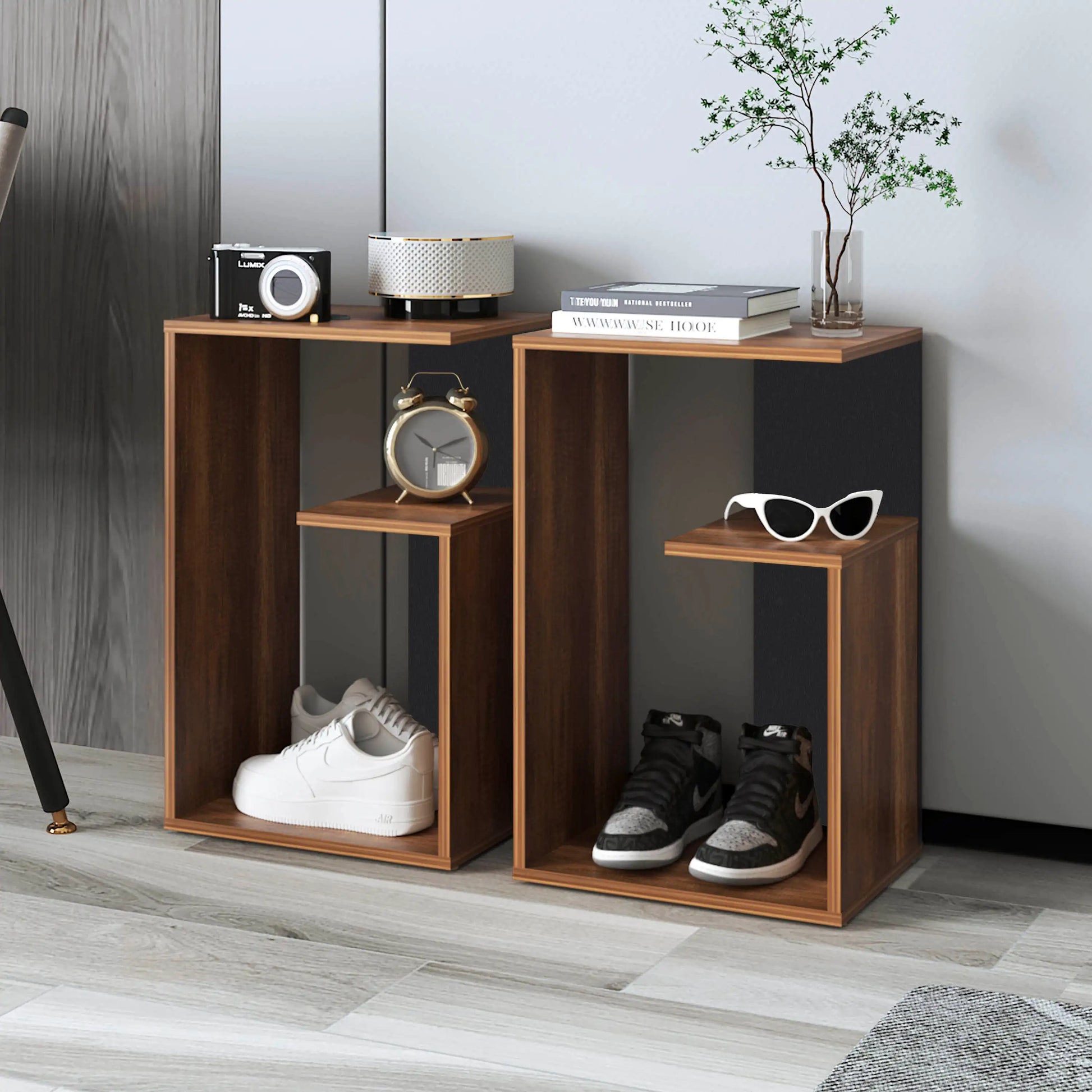 Elevate your living room with this sleek side table, designed to seamlessly blend beside your cozy couch or sofa. Crafted for compact spaces, this end piece offers practical storage without compromising on style. The small stature ensures it fits neatly into any room layout while providing ample surface space for your coffee cup or remote control on its tray-like top. Below, dual shelves offer convenient spots for magazines or decorative items, making it an indispensable stand in any modern home. Customers can buy two to create a matching set, enhancing the symmetry and functionality of their living space. This side table is perfect for those who appreciate both form and function, adding a touch of elegance to any room.