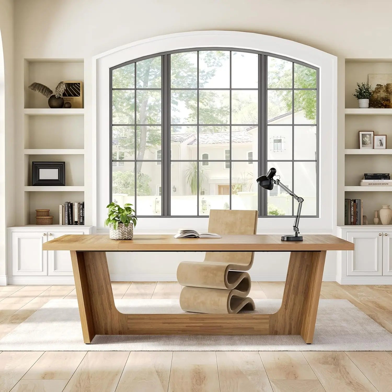 Elevate your workspace with the 71" Modern Executive Desk, designed to blend sleek aesthetics and practical functionality. Its spacious surface offers ample room for productivity, while clean lines and contemporary finishes create a refined environment. Ideal for professionals seeking a sophisticated centerpiece that balances style with efficiency.