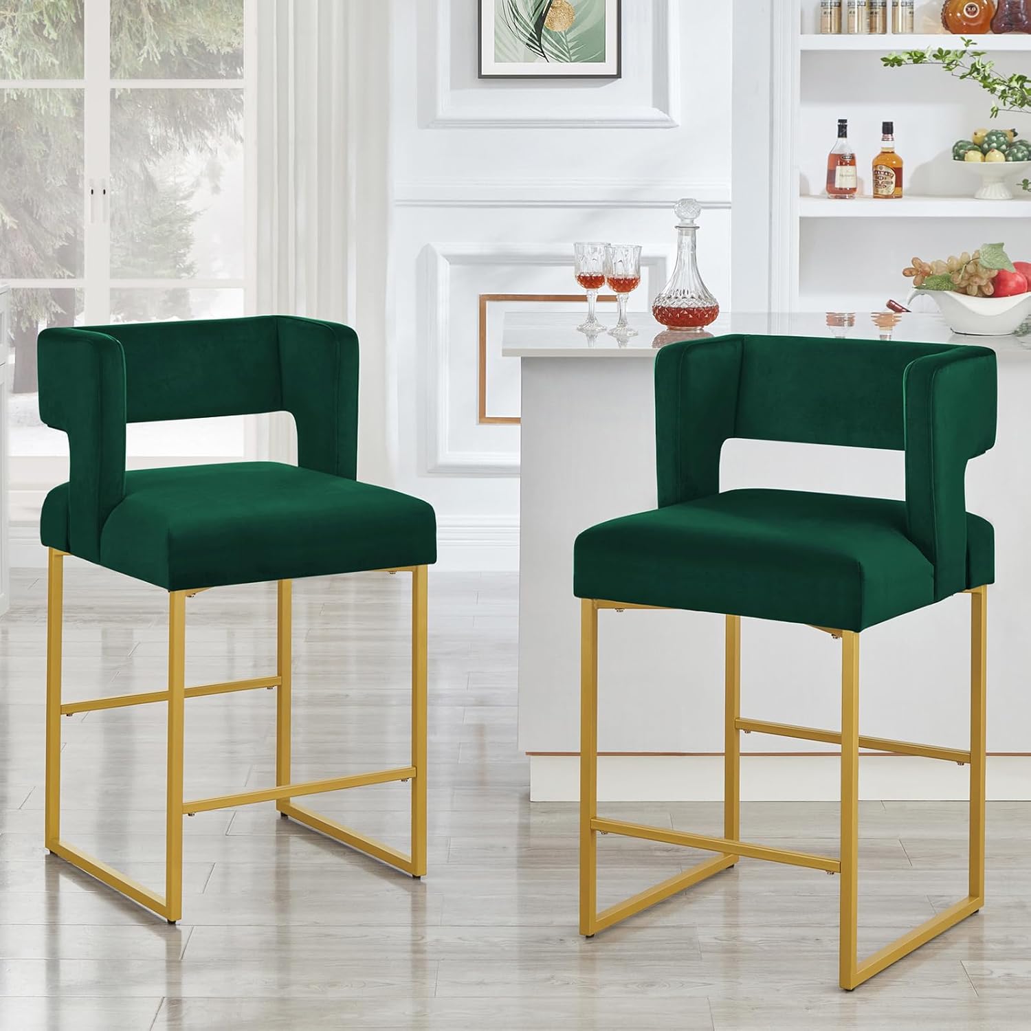 Elevate your kitchen island with our Square Counter Height Bar Stools. The modern, luxurious design features a square open back and plush velvet fabric, perfect for adding a touch of sophistication to your space. Set of 2 stools for upscale entertaining and stylish dining.